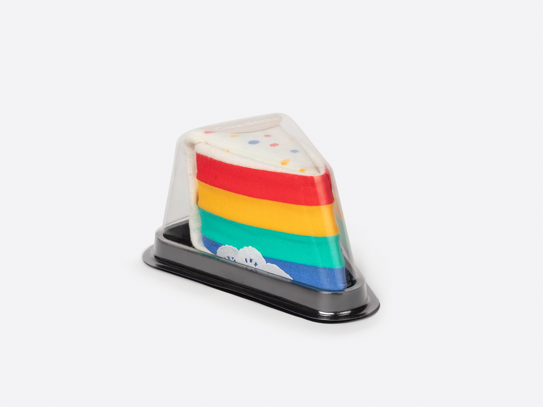 Pour les Gay Gourmands ! Une paire de chaussettes au desgin de Rainbow Cake.