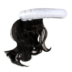 – Bandeau blanc avec une bande de cheveux courts attachés à l’arrière, la coupe mulet