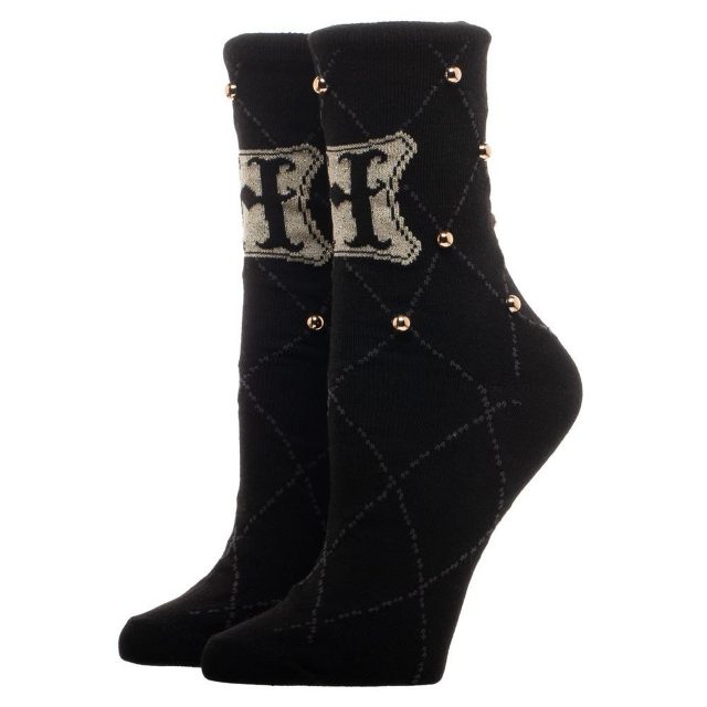 Envie de rentrer de plein pied dans le monde des sorciers ? On a les chaussettes insolites qu’il vous faut : les chaussettes spéciales Poudlard ! Très stylé avec leurs losanges et leur petites boules dorées, ces chaussettes féminines ont beaucoup de cachet.