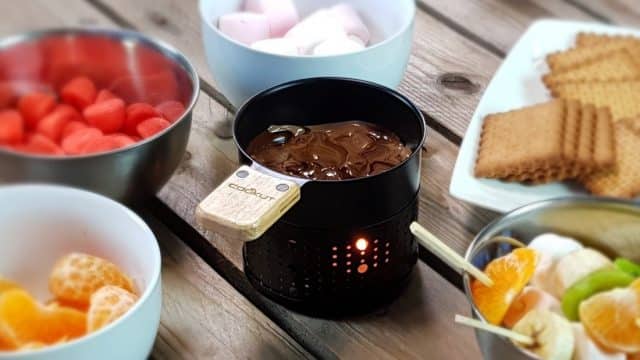 Un kit de fondue au chocolat pour se faire une petite fondue à 2 ou 3 personnes n’importe où !
