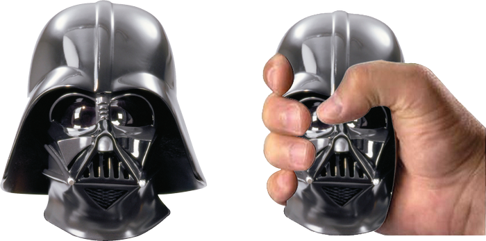 Vous sentez la Force ? Oui, la Force, celle qui vous donne le pouvoir d’écraser d’une seule main la tête de Dark Vador avec son célèbre casque, de la presser comme un citron ou comme une balle anti-stress… ah c’est une balle anti-stress ? Peu importe, il faut une sacrée dose de courage et de Force pour oser écraser Dark Vador même sous forme de balle anti-stress…