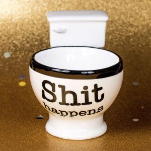 Mais en plus d’être drôle et bien fait, ce mug toilettes est philosophique. Si, avec sa phrase en anglais : « shit happens », traduisons cela par : « les emmerdes, ça arrive. » Réalité implacable pour tous, ce mug vous permet donc de commencer la journée avec le sourire et en étant prêt à affronter les aléas de la vie. Ca fait beaucoup pour un mug déjà non ?